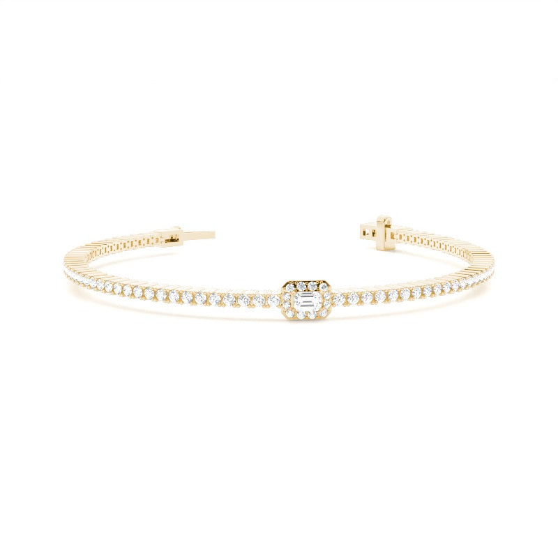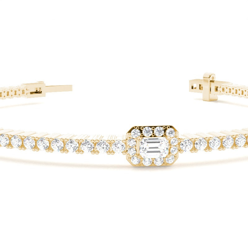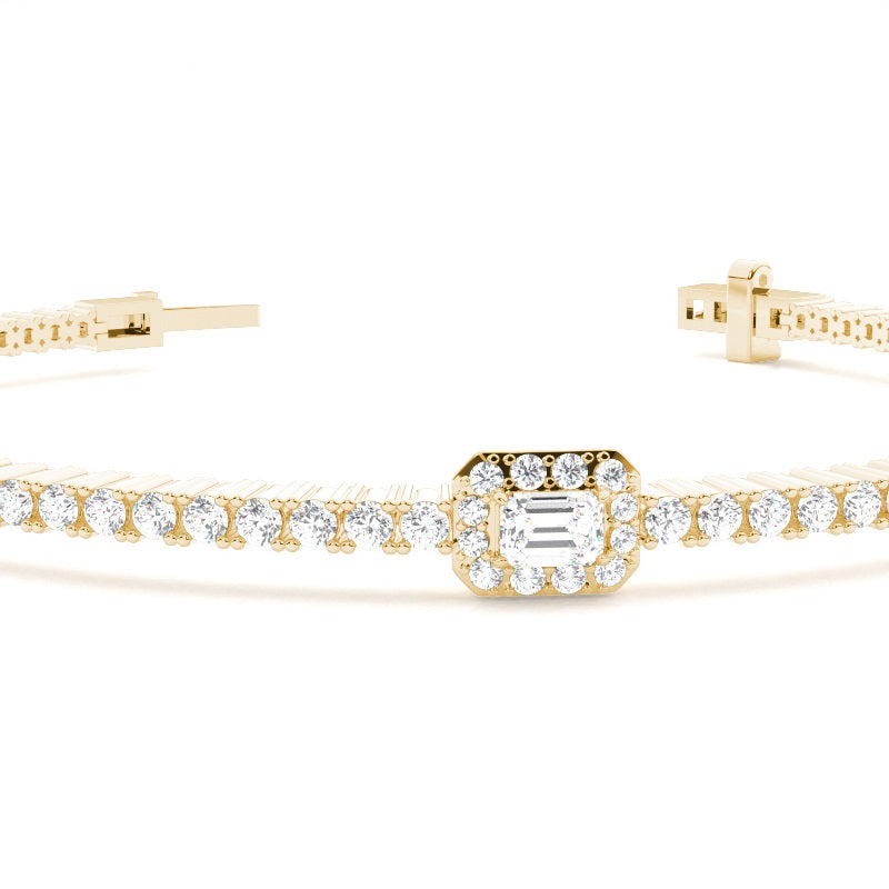 Discover our , Claw Prong, Plate Prong Tennis Bracelet in Gold, with 2.020 ct.wt. EF VVS-VS Round, Emerald Lab-Created Diamond