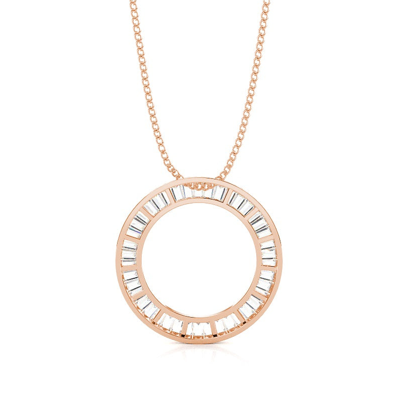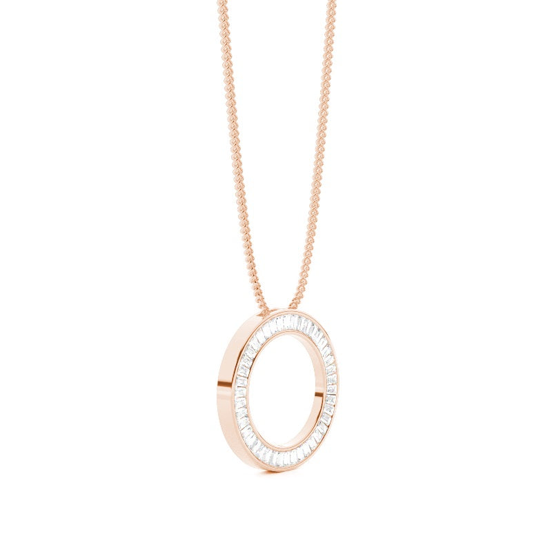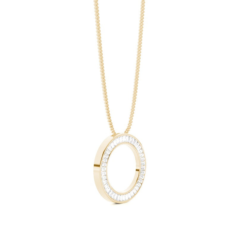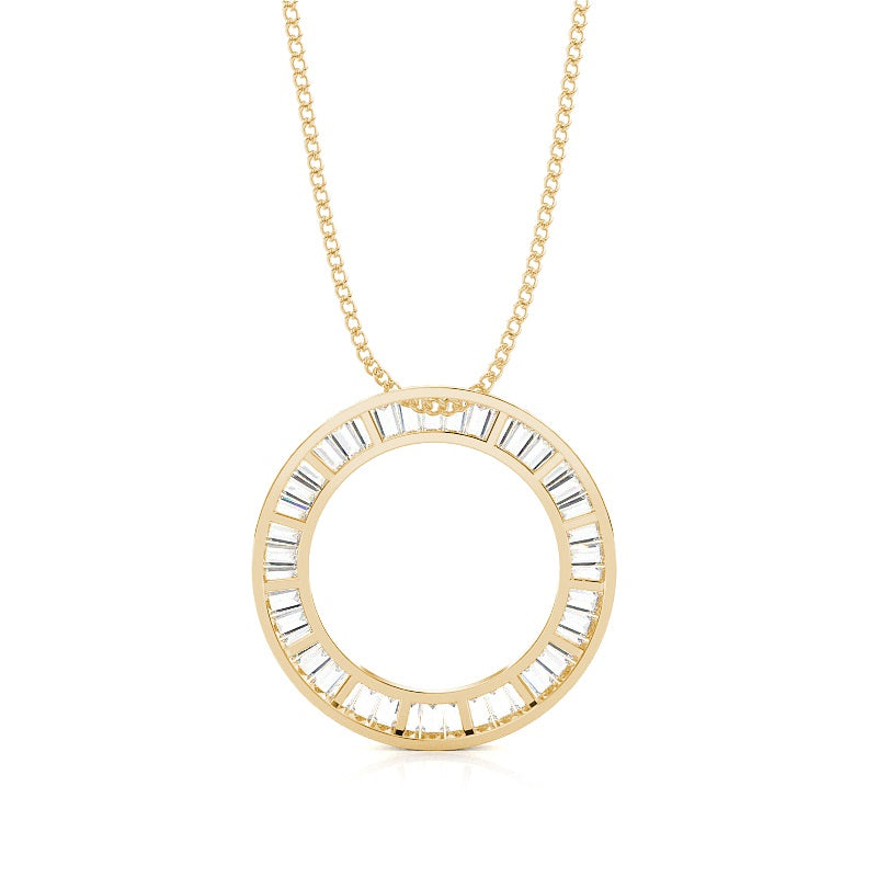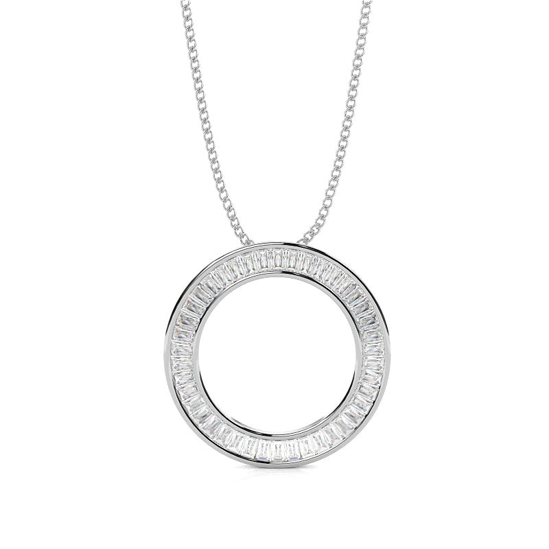 Discover our Channel Circle Pendants in 9K White Gold, with 0.820 ct.wt. H-I SI Baguette Natural Diamond