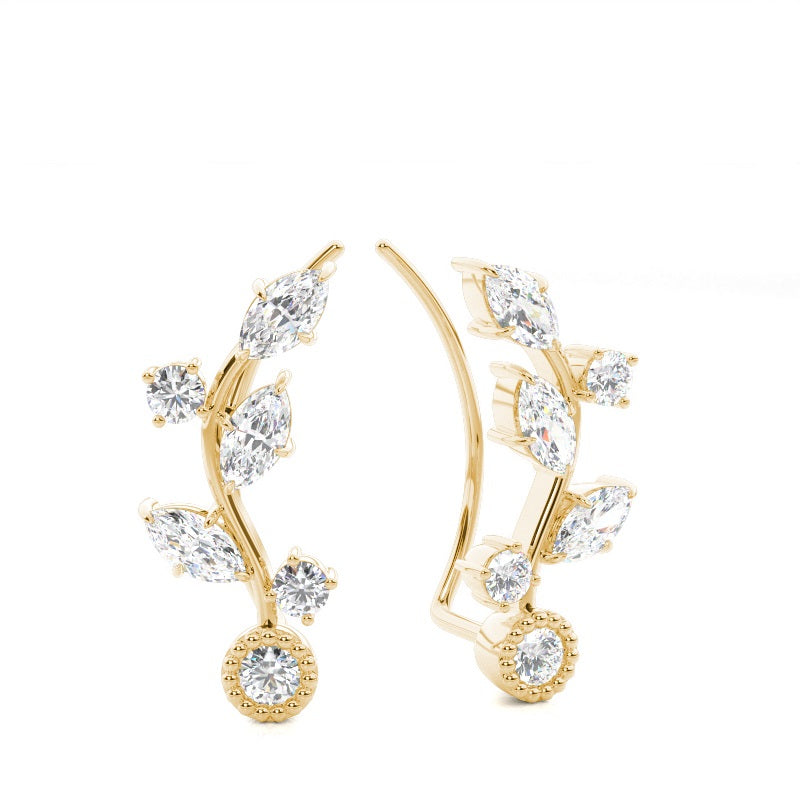 Discover our Prong Ear Jackets and Climbers in Gold, with 0.990 ct.wt. EF VVS-VS Marquise, Round Lab-Created Diamond