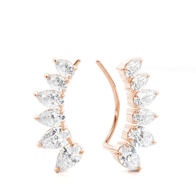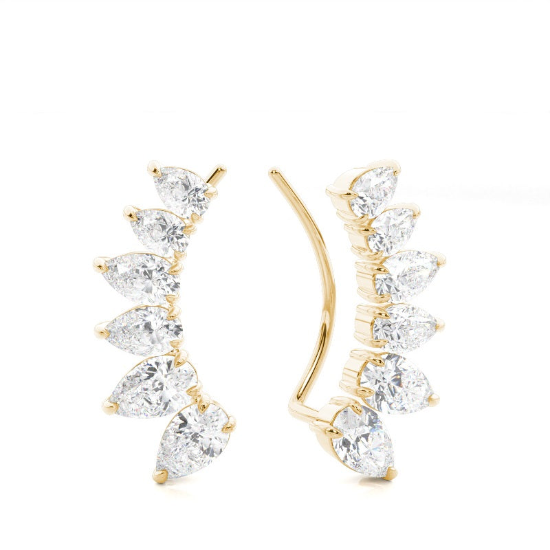 Discover our Claw Prong Ear Jackets and Climbers in Gold, with 1.400 ct.wt. EF VVS-VS Pear Lab-Created Diamond