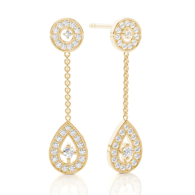 Discover our Pave, 4 Prong Drop Earrings in Gold, with 0.306 ct.wt. EF VVS-VS Round Lab-Created Diamond