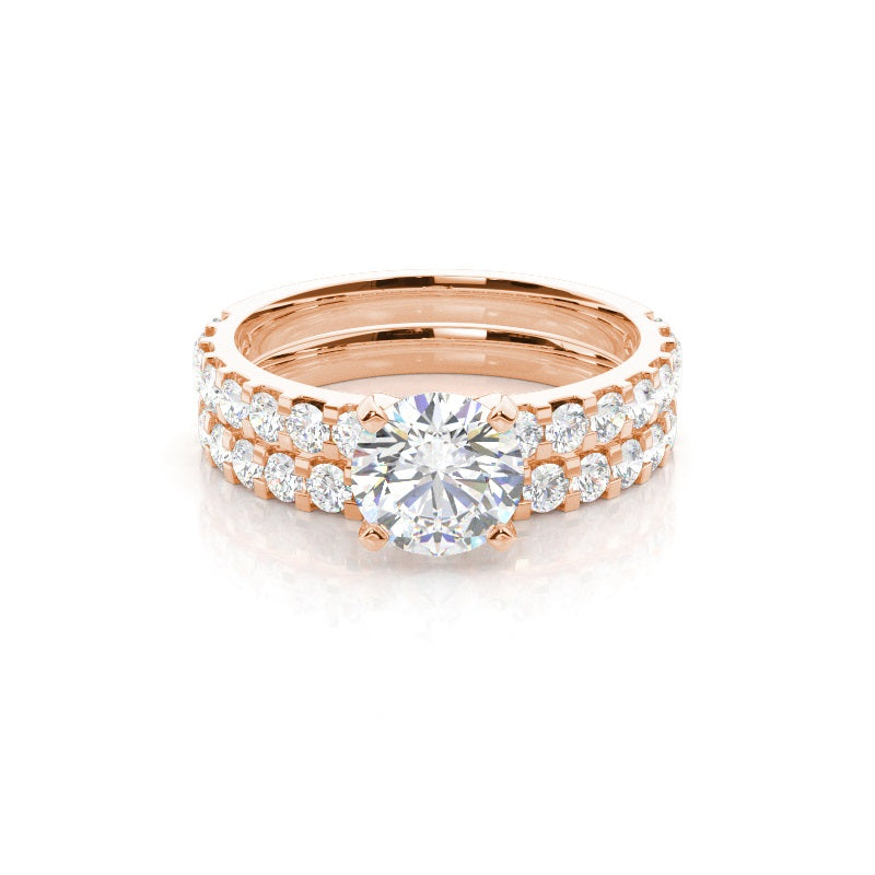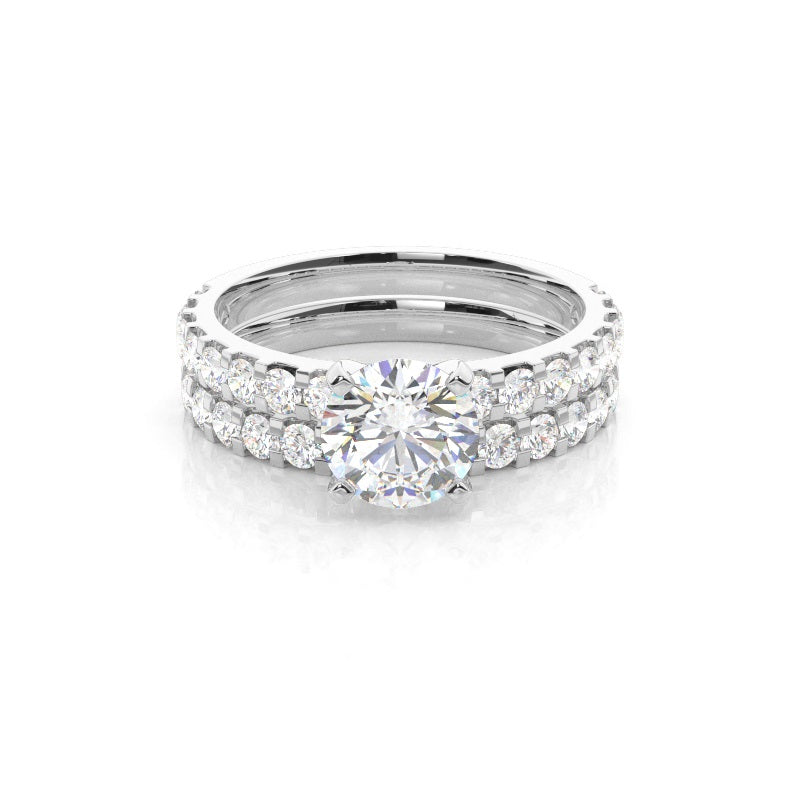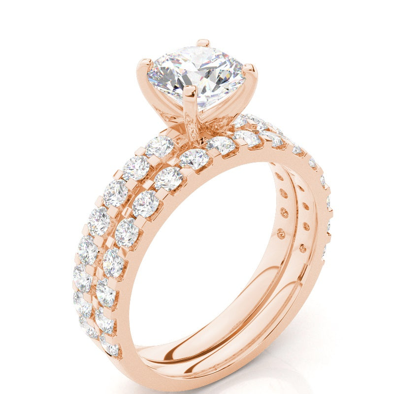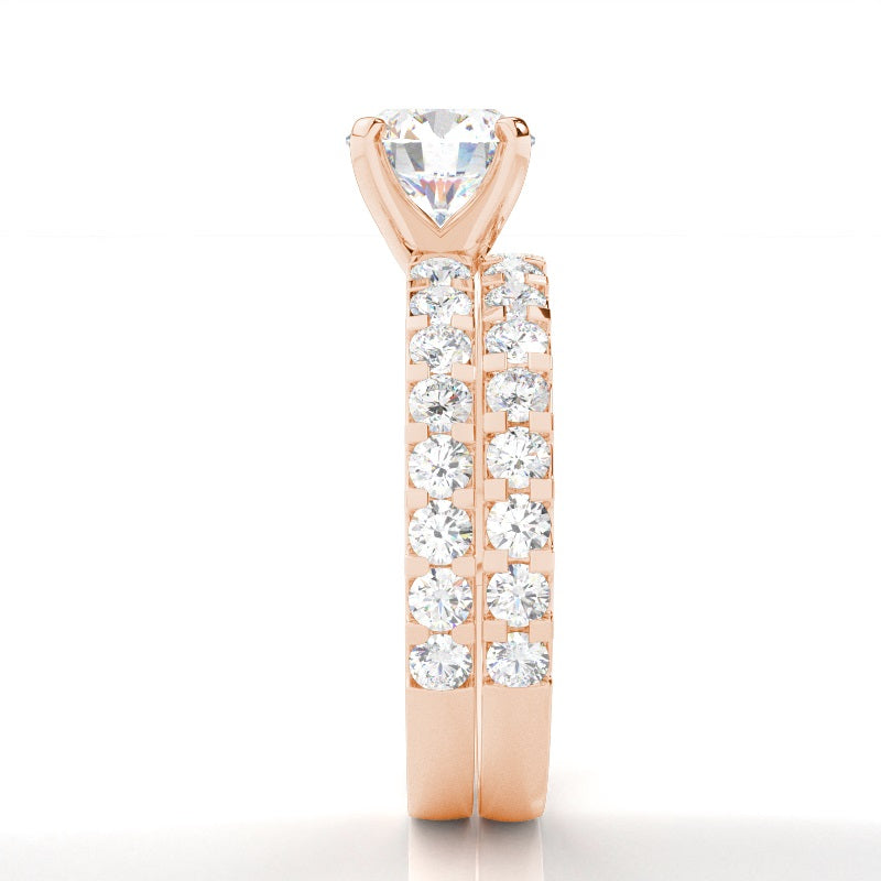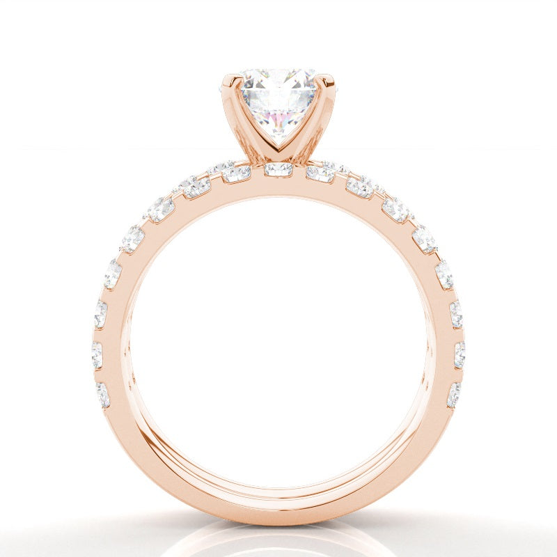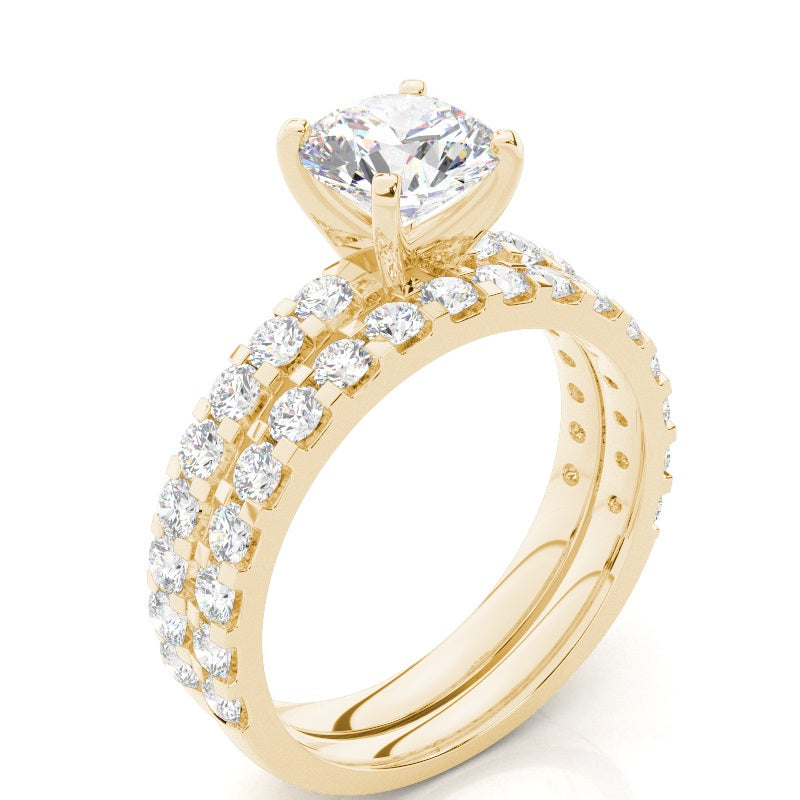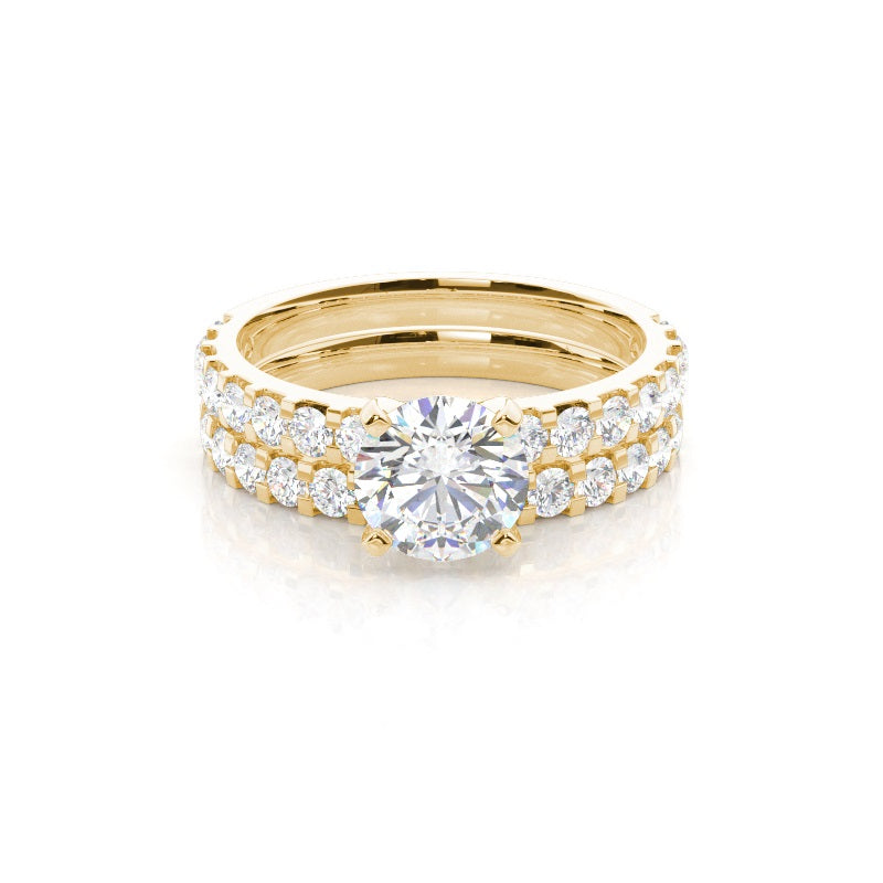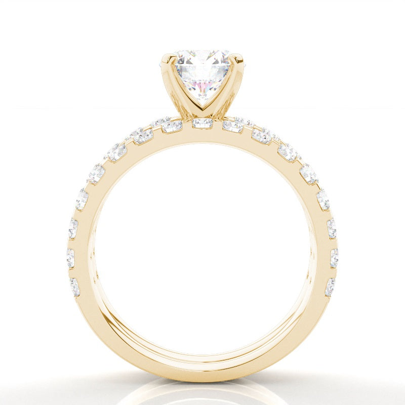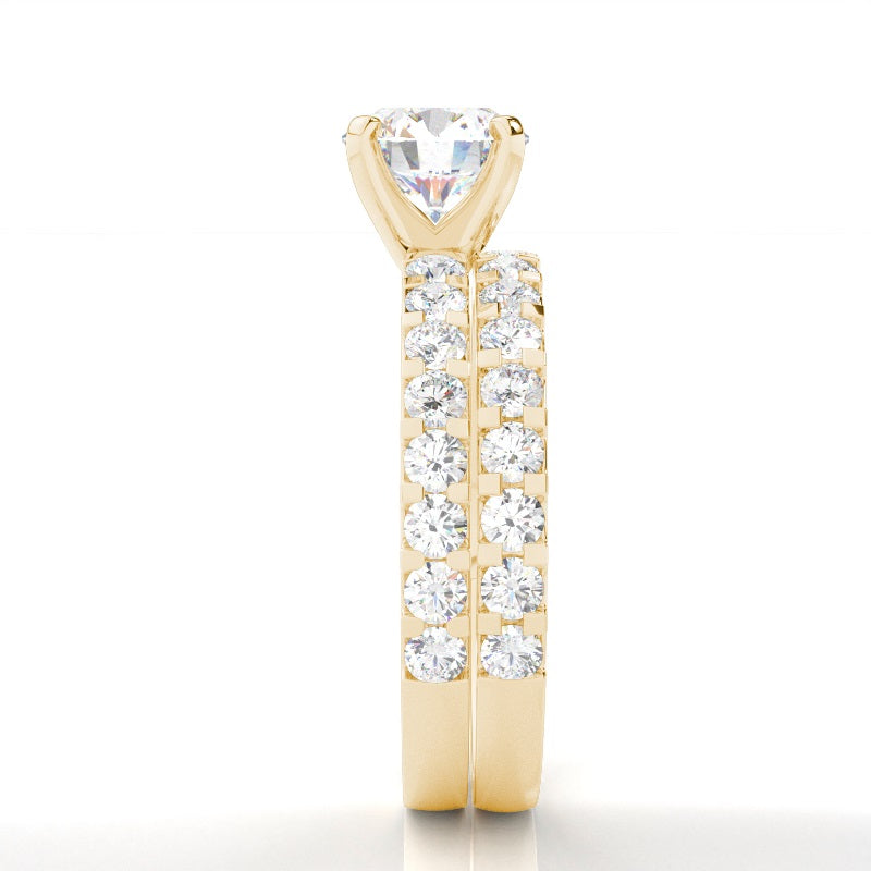 Discover our 4 Prong Bridal Set in Gold, with a Round Lab-Created Diamond and side stone of aprox. 0.049 ct.wt. Round EF