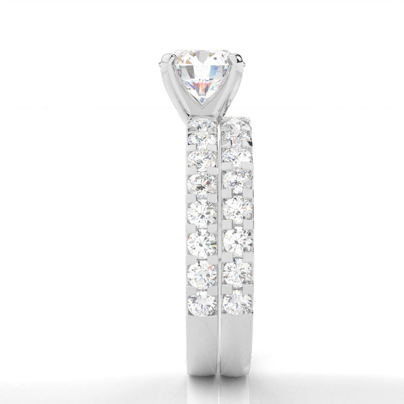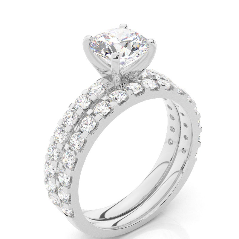 4 Prong Setting Plain Engagement Ring With Matching Band