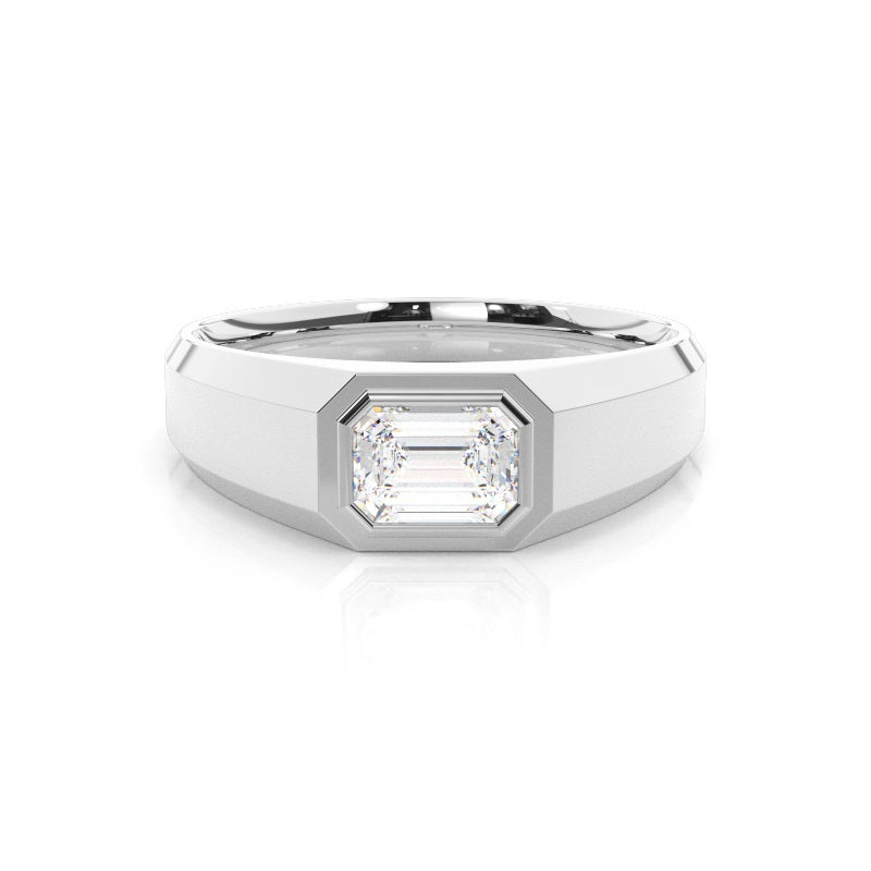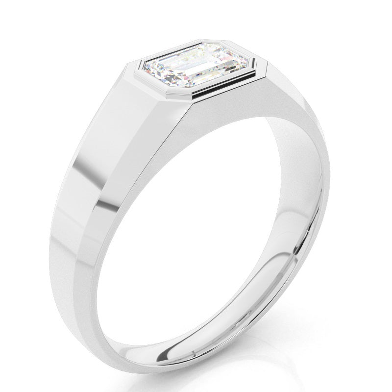 Discover our Bezel Mens Engagement Rings in White Gold, with Center Stone of 0.500 ct.wt. G SI1 Emerald Lab-Created Diamond