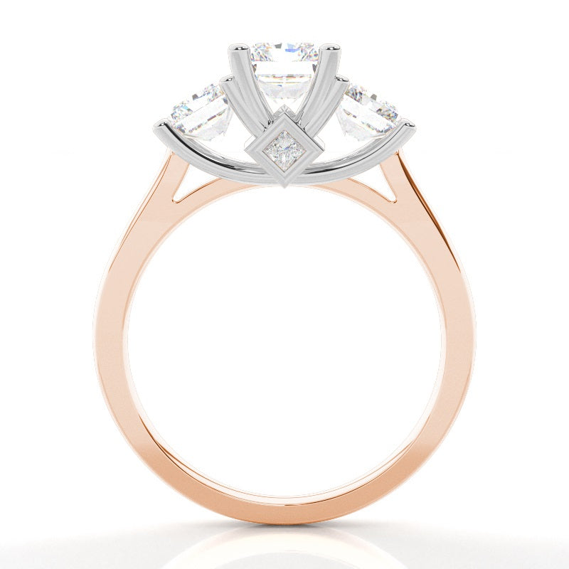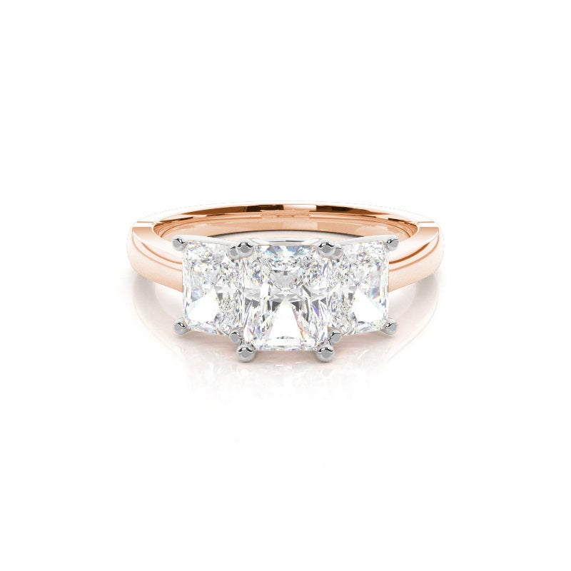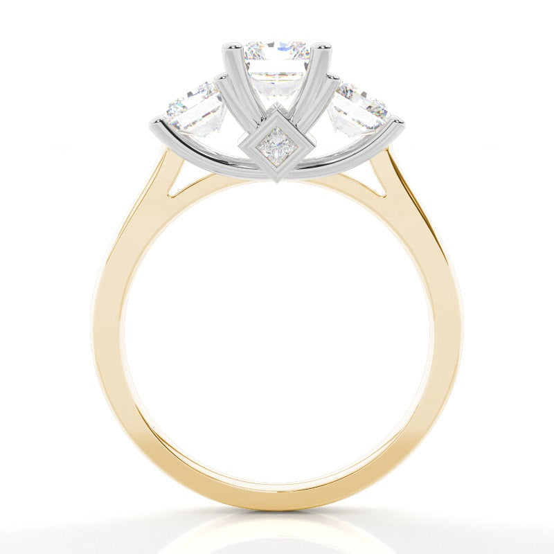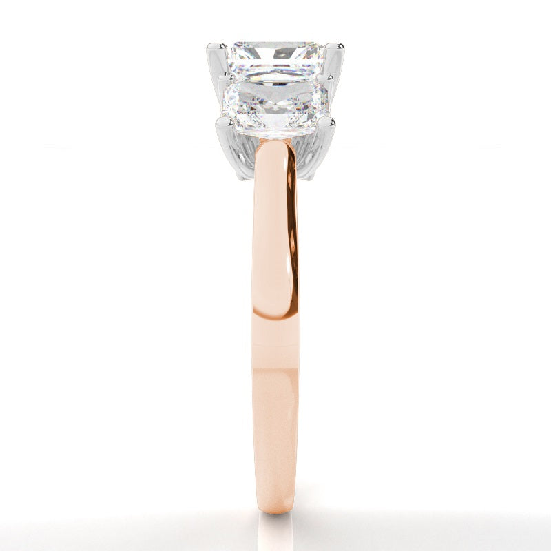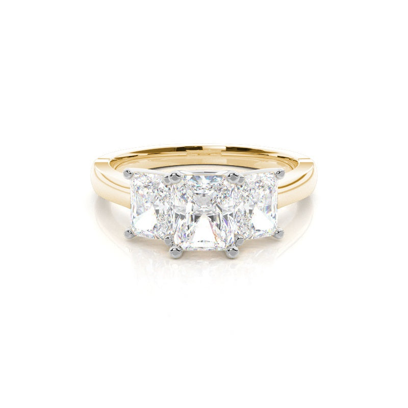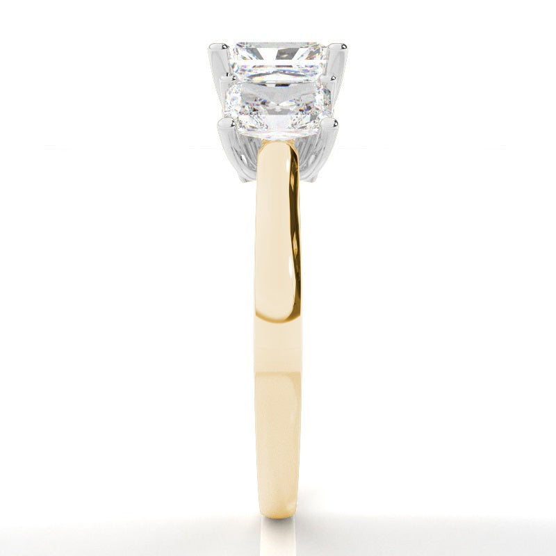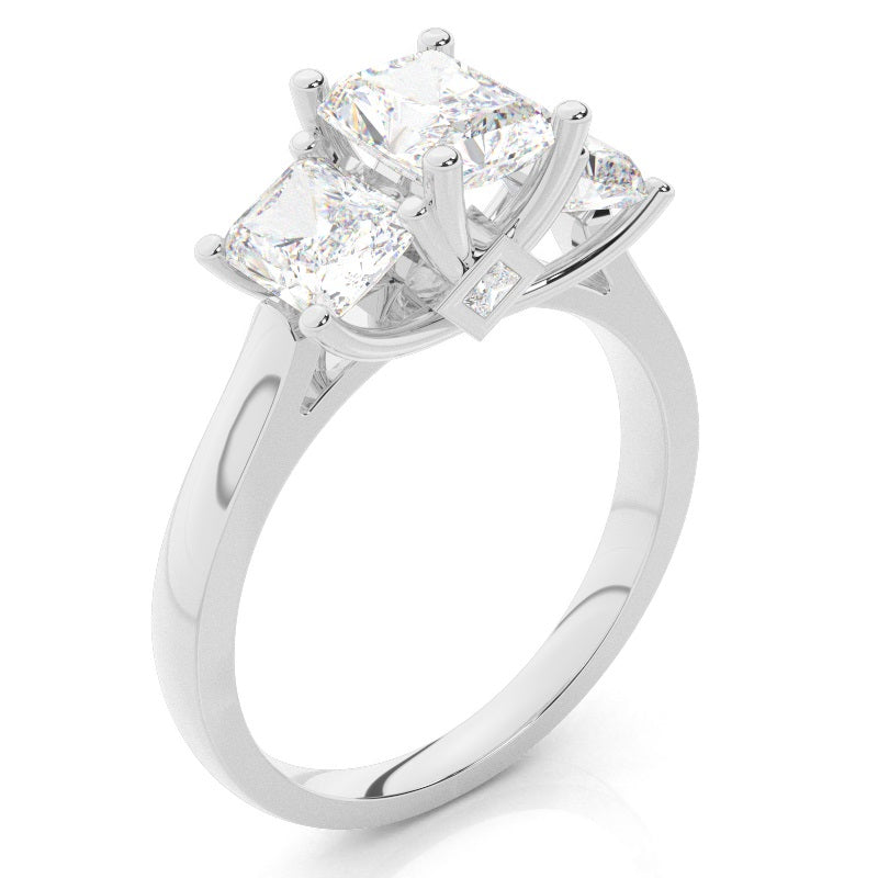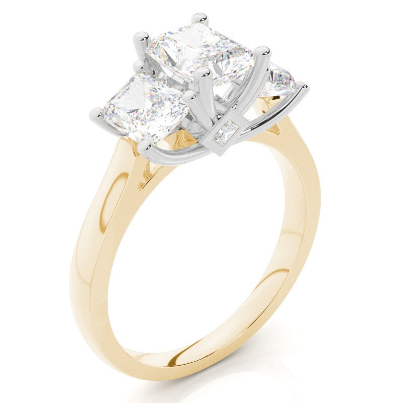 Discover our Prong Trilogy in Gold, with 1.200 ct.wt. EF VVS-VS Radiant Lab-Created Diamond and approx. 0.034 ct.wt. Princess EF