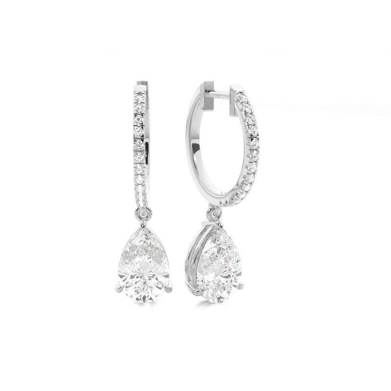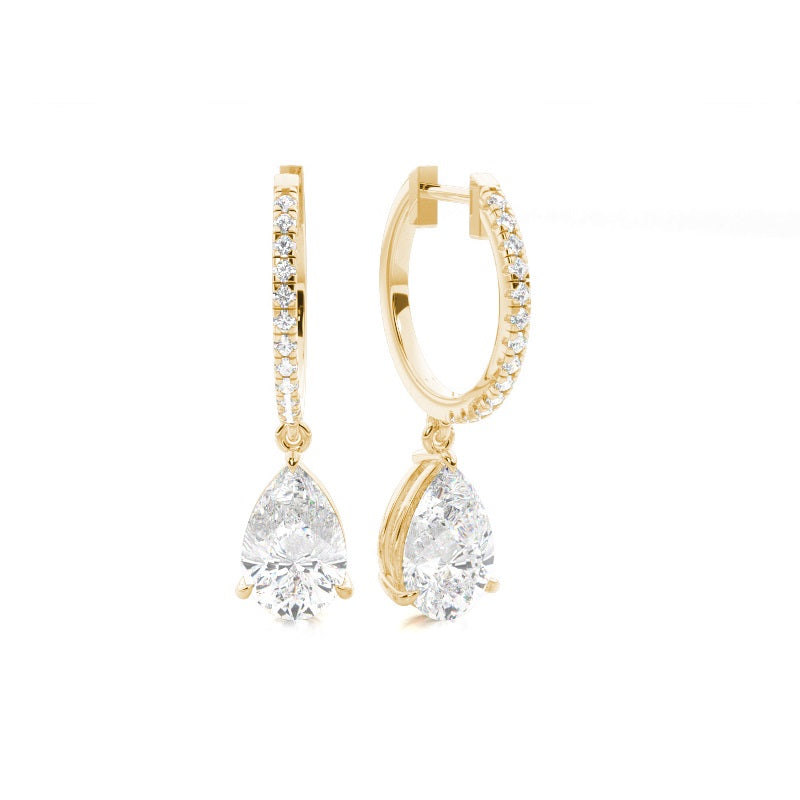 Discover our 3 Prong, Split Prong Hoop in Gold, with 0.750 ct.wt. D-E VVS-VS Pear, Round Lab-Created Diamond