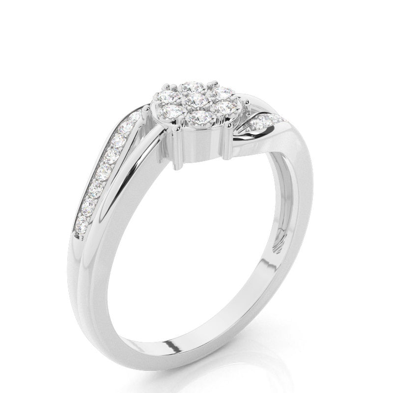 Discover our Micro Pave, Illusion Plate Prong Cluster Engagement Rings in Gold, with 0.119 ct.wt. EF VVS-VS Round Lab Grown Diamond