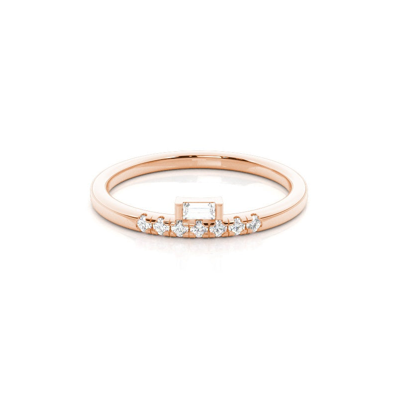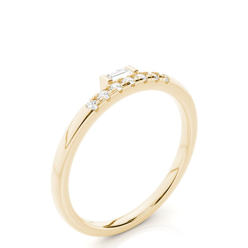 Discover our Bar, Prong Everyday Rings in Gold, with 0.155 ct.wt. EF VVS-VS Baguette, Round Lab-Created Diamond