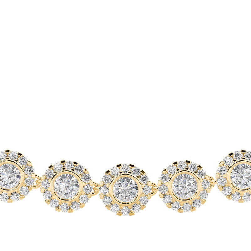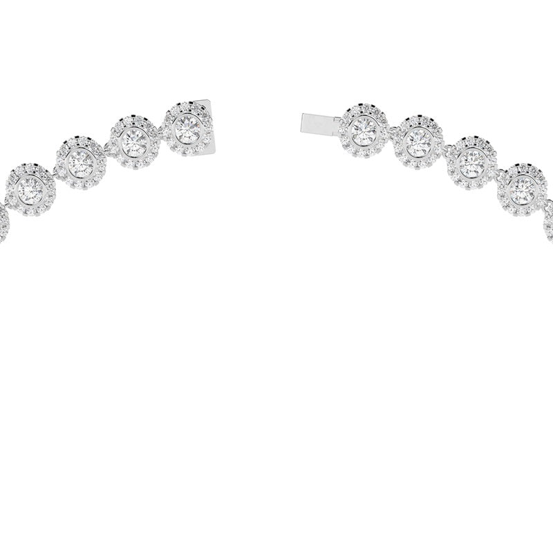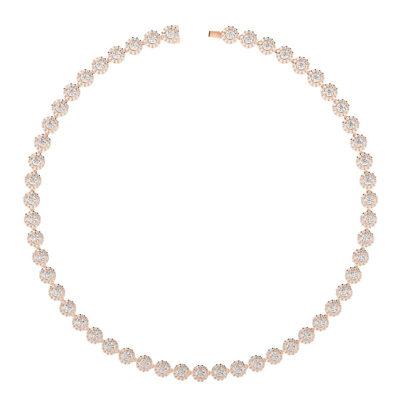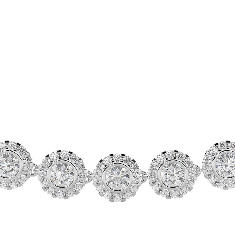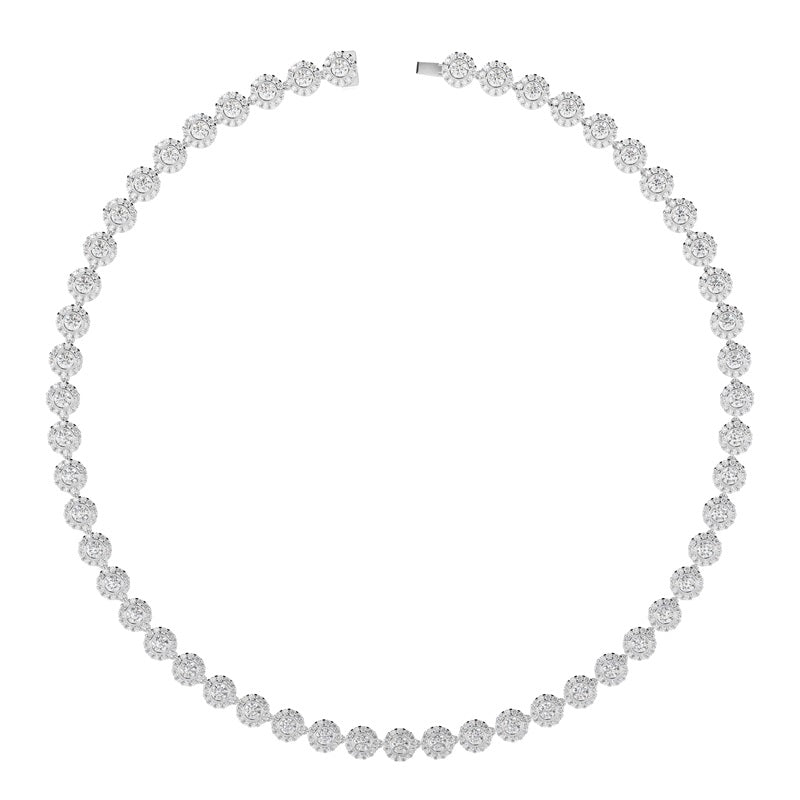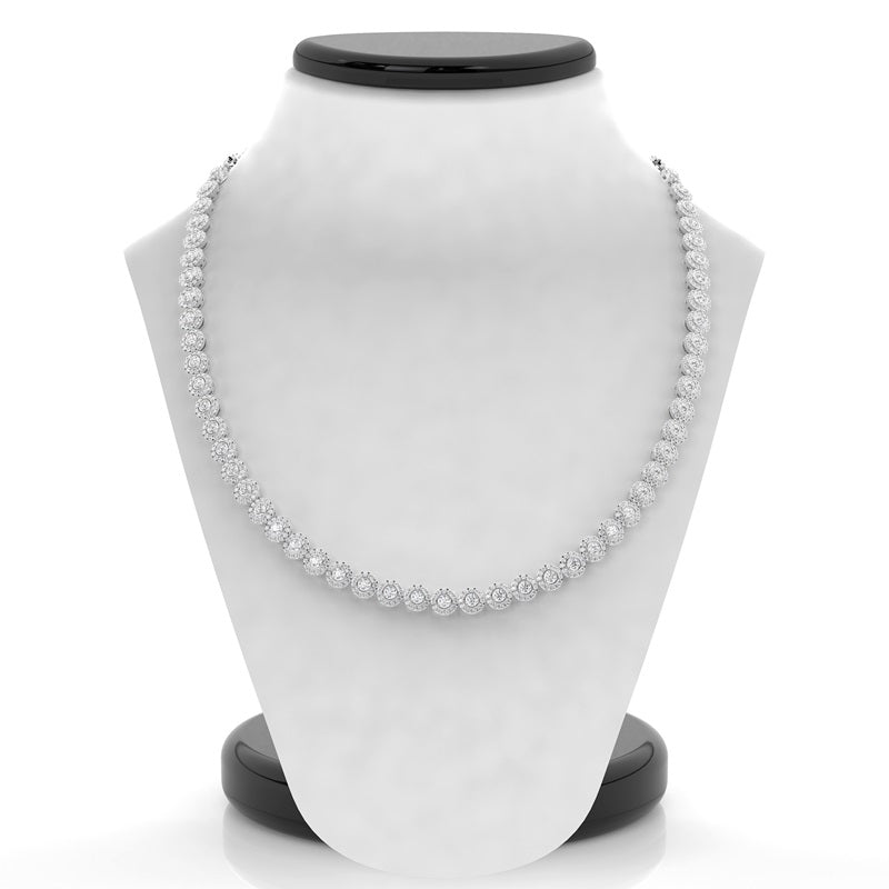 Discover our Full Bezel, Plate Prong Tennis Necklaces in 18K White Gold, with 12.267 ct.wt. H-I SI Round Lab-Created Diamond