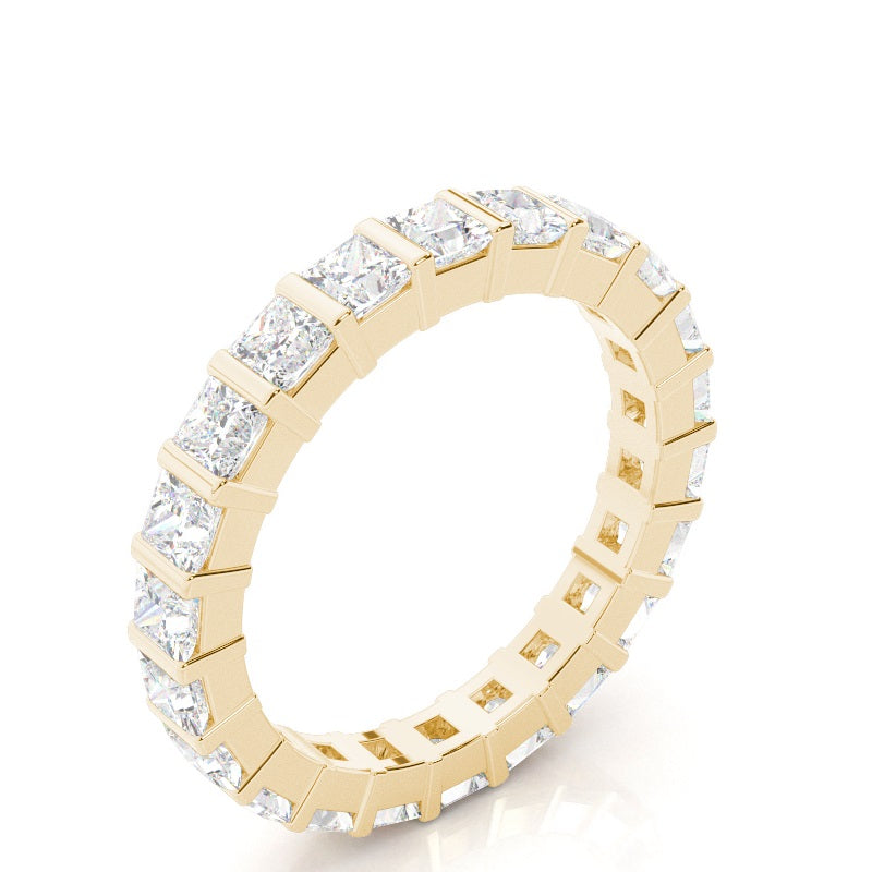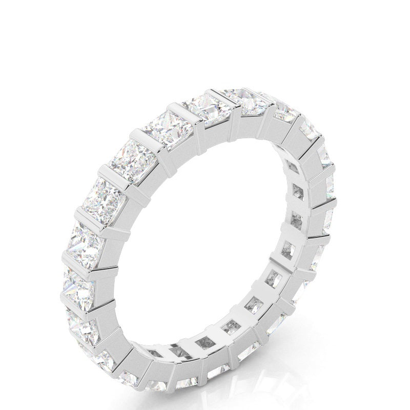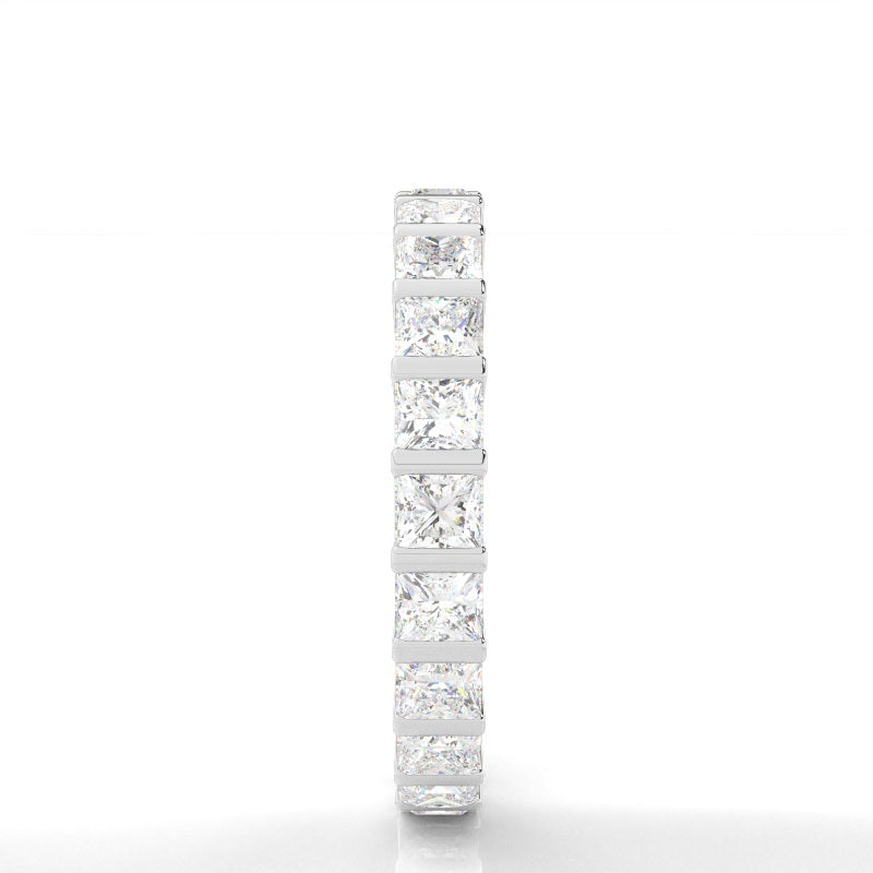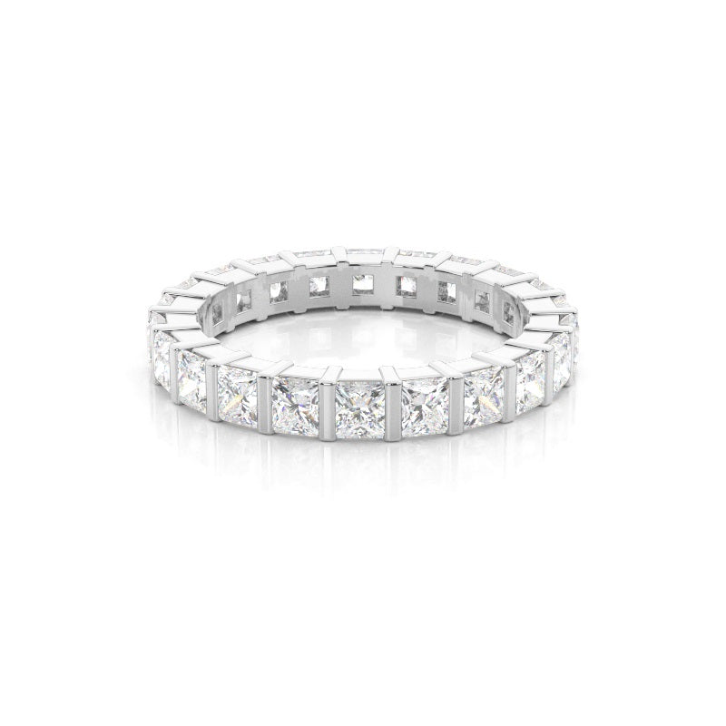 Discover our Bar Full Eternity in White Gold, with a Princess Lab-Created Diamond When it comes to selecting your engagement ring, you want something different. This bar setting full eternity diamond ring has a distinguished look and an extraordinary appeal.