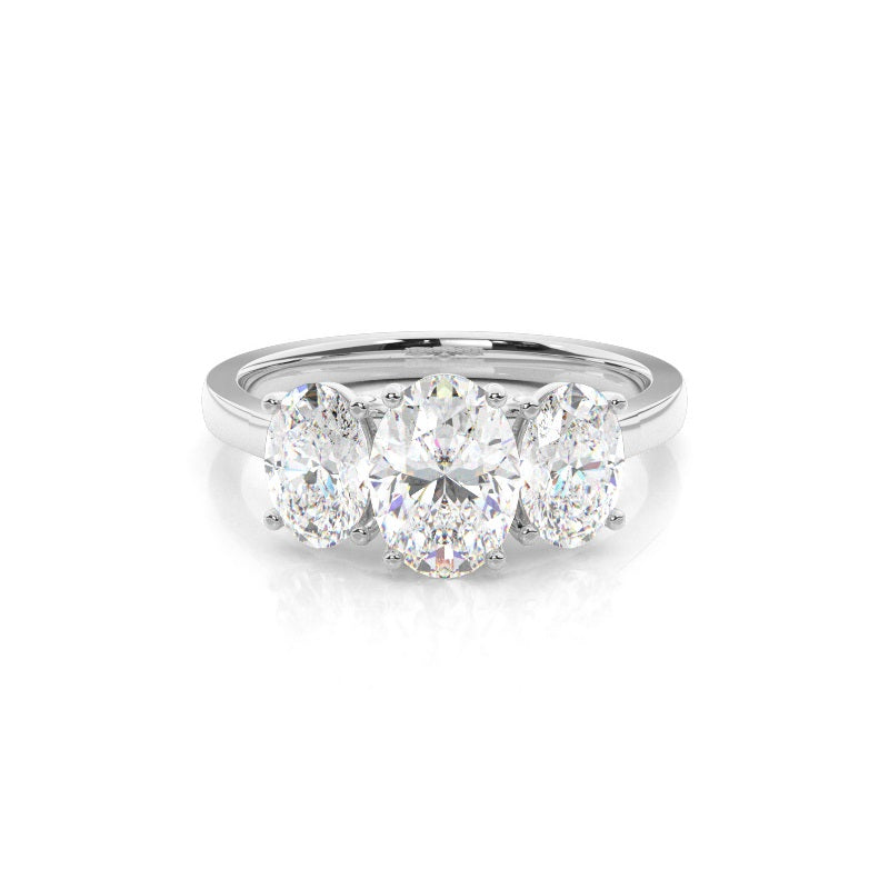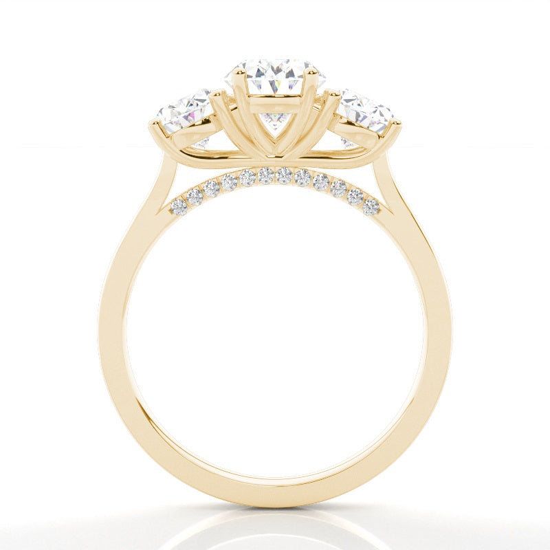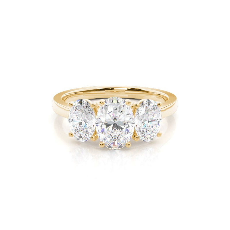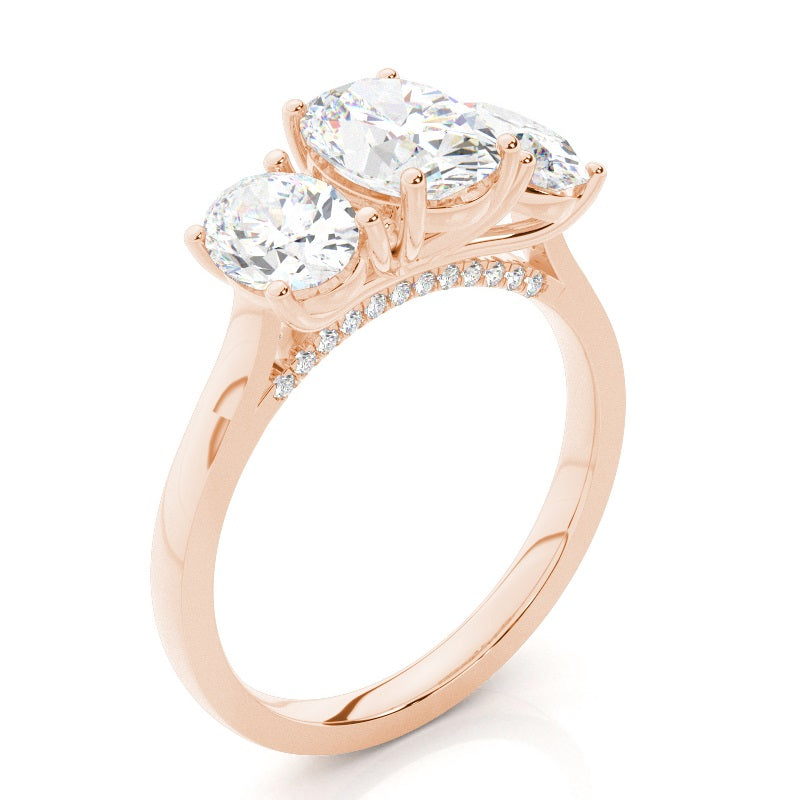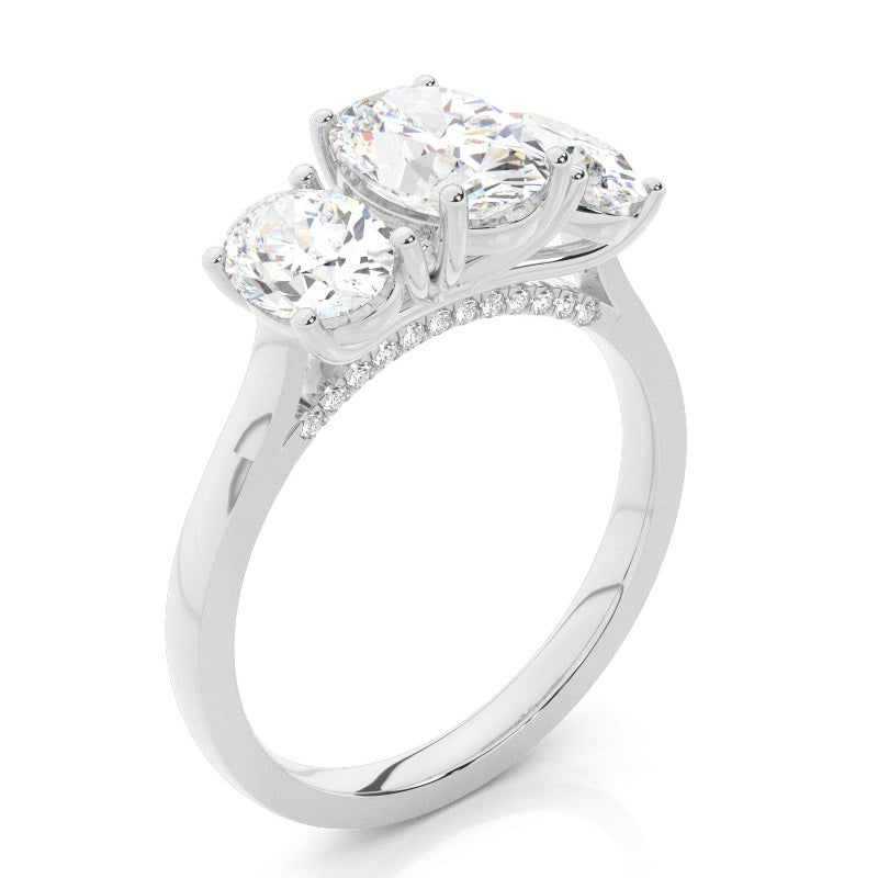 Discover our Prong Trilogy in Gold, a Oval Lab-Created Diamond and aprox. 0.080 ct.wt. Round EF