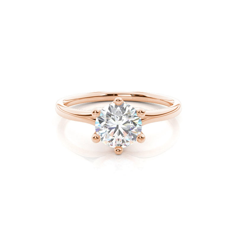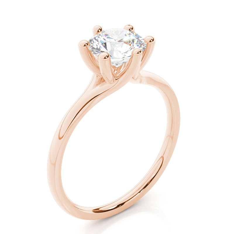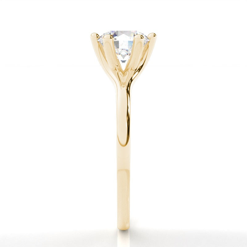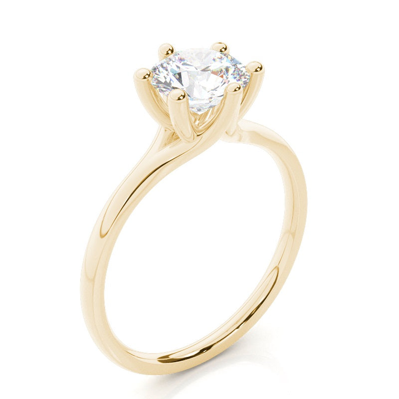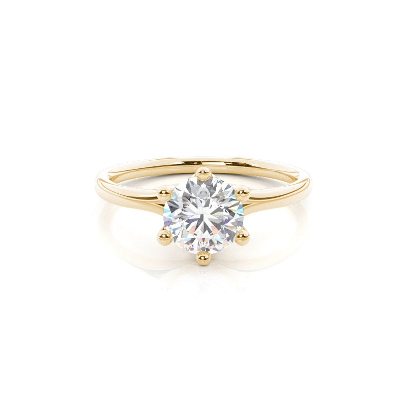 Discover our 6 Prong Solitaire in Gold, with a Round Lab-Created Diamond You'll look naturally elegant when wearing this classic take on a six prong set solitaire engagement ring with it's own unique twist. A timeless style that emphasizes the natural shine and brilliance of the diamond.