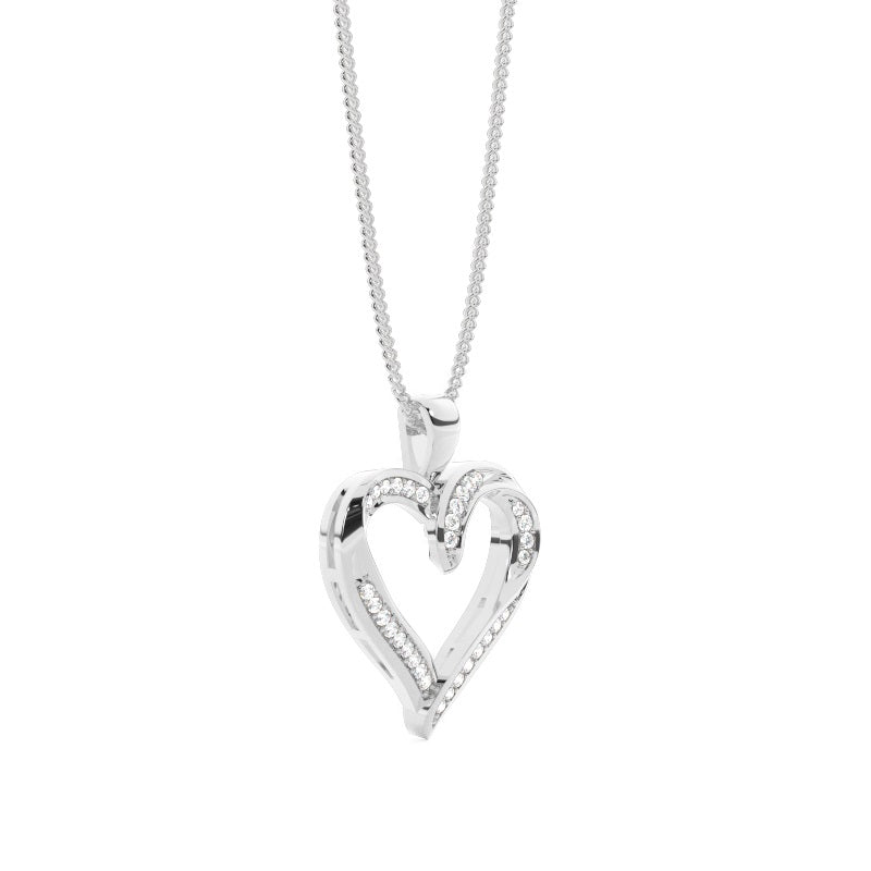 Discover our Micro Pave Heart Pendants in 9K White Gold, with 0.102 ct.wt. H-I I1 Round Natural Diamond