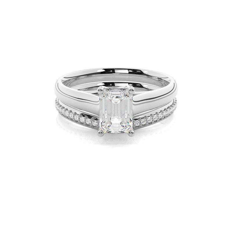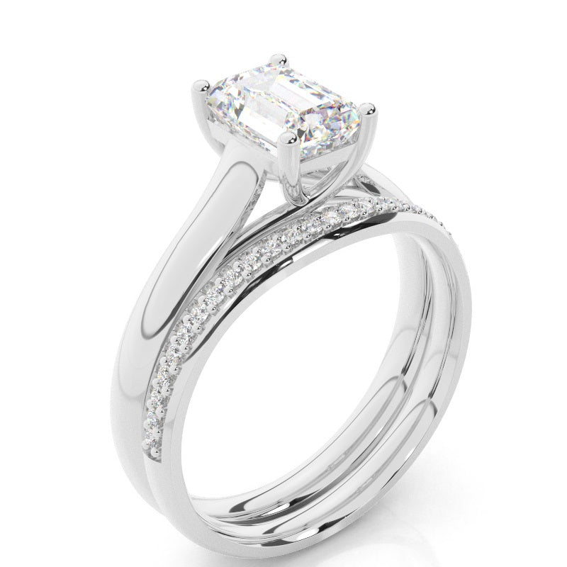 Discover our Prong Bridal Set in White Gold, with Center Stone of 1.000 ct.wt. EF VVS-VS Round Lab-Created Diamond and side stone of aprox. 0.628 ct.wt. Round EF