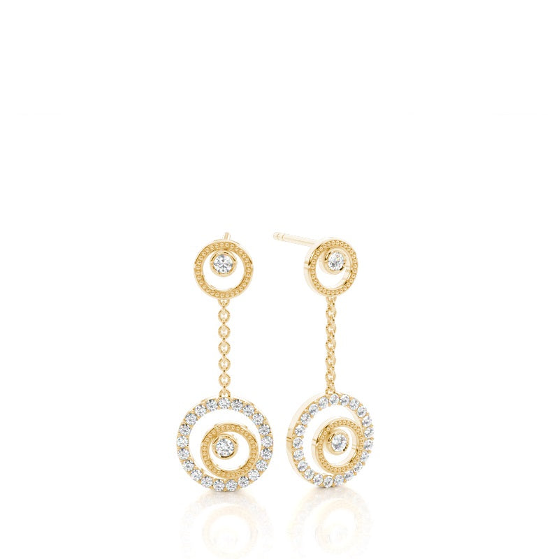 Discover our Full Bezel, Pave Drop Earrings in Gold, with 0.344 ct.wt. EF VVS-VS Round Lab-Created Diamond